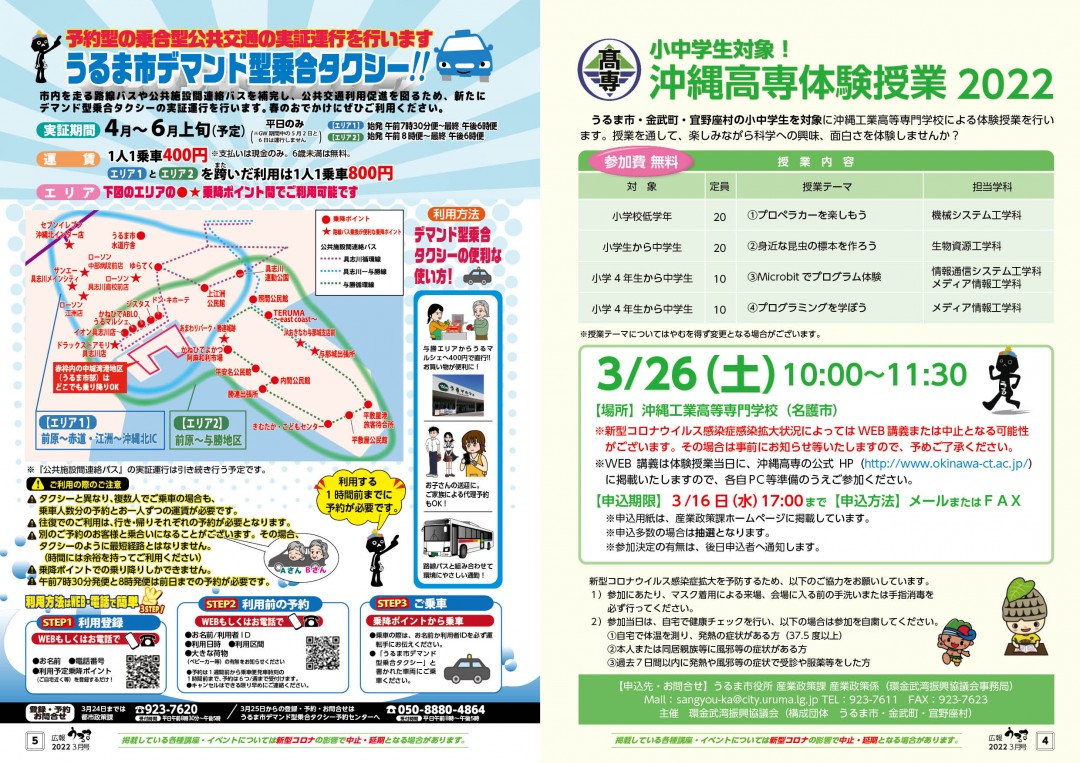 沖縄高専体験授業2022 うるま市デマンド型乗り合いタクシー |