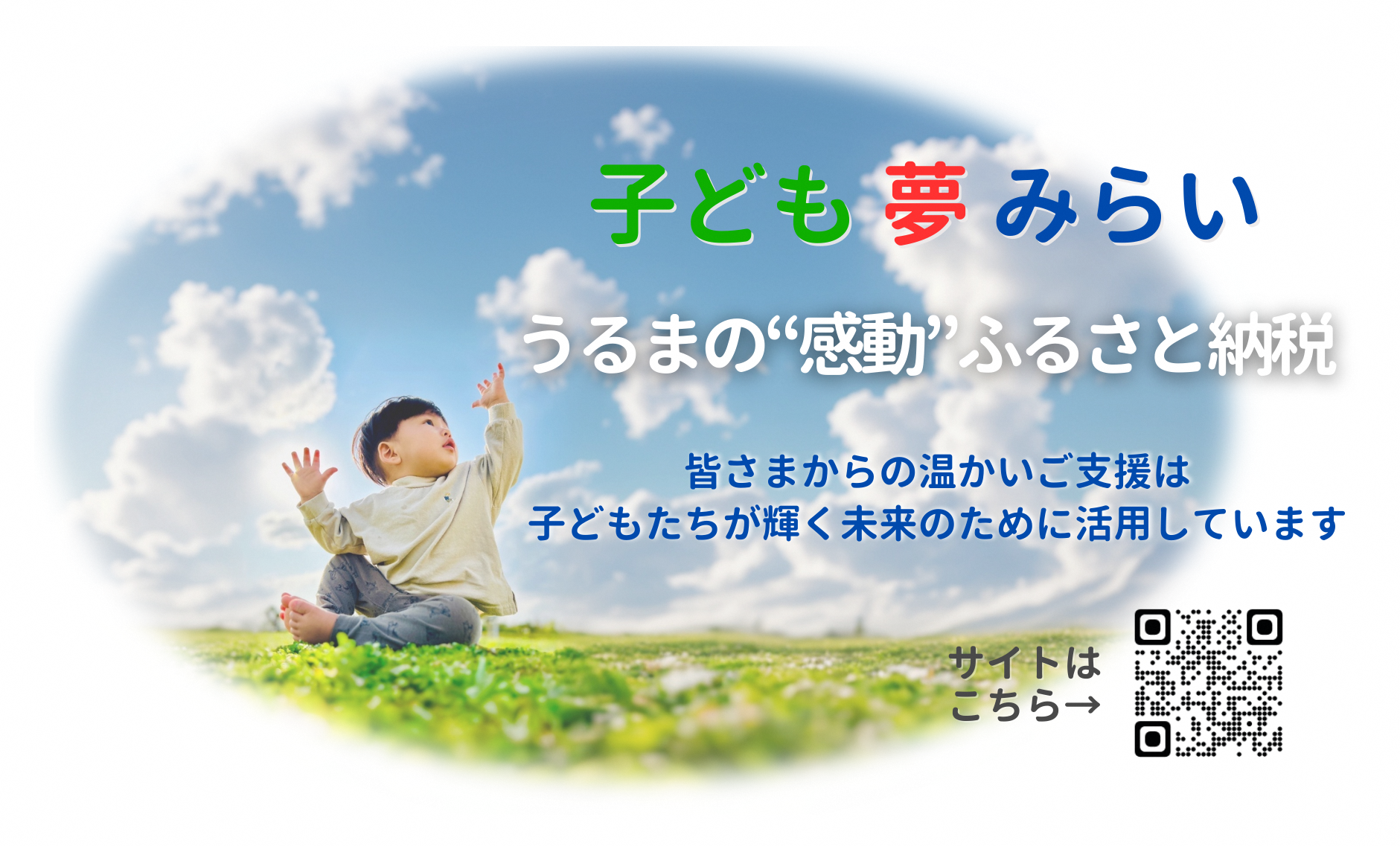 ふるさとを離れて暮らす方も、うるま市を応援したいと考えてくださる方も、皆さまの温かいお気持ちが確かにうるまの子どもたちの未来へとつながります。「うるま市を応援したい」という想いを、ぜひ寄附というかたちでお寄せいただけますと幸いです。